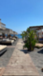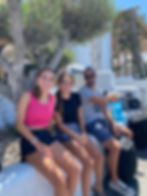 Day 9: Today we had a tour scheduled to take us around Santorini island through a preferred tour company I work with, Eclectic Greece. We were picked up in a Mercedes Maybach Sprinter – the nicest van I’ve ever been in! Our first stop we took in the views from the Firostefani village, which is an extension of Fira, the capital of Santorini. Then headed to the top of the island to visit the Prophet Elias Monastery. It is the only male monastery on the island and is one of the oldest, built in 1712. Then walked through the Megalochori Village one of the most picturesque villages on the island. I could walk the streets for days looking at all the different blue doors and beautiful pink flowers (called bougainvillea trees). Next stop we went to the Red Beach on the island, Kokkini Paralia. It’s extremely dangerous to swim there as they often have falling rock, but visitors either don’t read the signs or they don’t care and do it anyways. We opted to just take in the views from afar. Our last stop of the day was the Black Beach, Perívolos beach. Before reserving our beach chairs we had lunch at a beachside fine dining restaurant called Forty One. We could’ve stayed an entire day here. They had jetskis, parasailing, boat tours available nearby, but we didn’t have enough time to explore those options. After arriving back to the town of Oia, we ate at the thai restaurant, Paradox. They had some of the best thai food we’ve ever had – tom yum soup, fried won tons (crab rangoon), pork dumplings, pad thai, and shrimp fried rice were to die for. Final stop of the day was for frozen yogurt at Solo Gelato (our girls favorite). They ended up going here every day we were there.