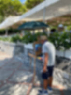 Day 10: Our last day on the island. We first went to the café we would visit each morning for coffee, Terpsi in Oia. Instead of getting coffee we got ouzo to sip on while taking one final leisurely stroll through the town. We then picked up an art piece to take home for the house, got more frozen yogurt, purchased souvenirs, went back to Tramonto restaurant where we had lunch on our first day in Santorini to reminisce on the trip and to take in sunset views. We had our last dinner at Pelekanos (a restaurant directly above our villa) and met our favorite waitress of the trip, Zoe.
